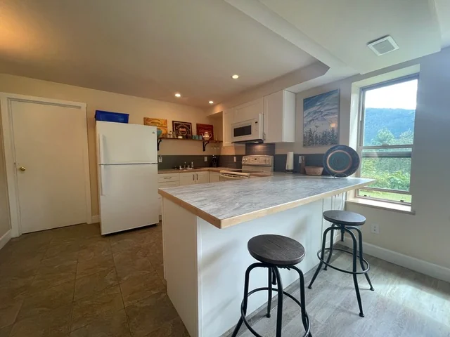 If you are looking for a peaceful sanctuary away from the hustle and bustle of town this is for you. This beautiful unit has one bedroom and one bathroom and is located off Longbeach Road approximately 25 minutes from Nelson. Stunning lake and mountain views add to the charm of this fully furnished suite. The master bedroom has a cozy feel with a king sized bed and walk in closet. The kitchen is open to the living space which has a sitting nook and sliding doors to the covered patio area; outside you will find a large shared garden, fruit tree's and lush lawns. Due to the rural location this rental is best suited to someone with a good vehicle in the snow, and someone who is willing to help the upstairs tenants with some snow removal. Shared laundry. Sorry no smoking or pets permitted.